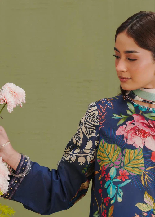 Midnight Blue Printed Lawn Suit with Silk Dupatta – 3 Piece Summer Wear