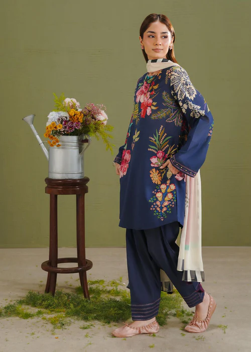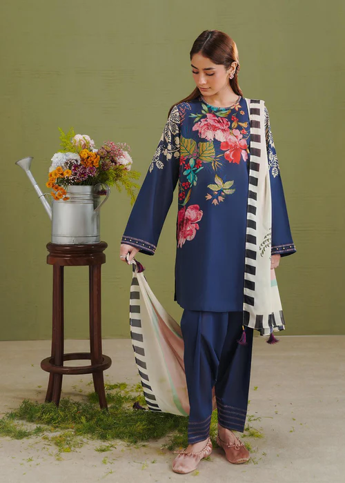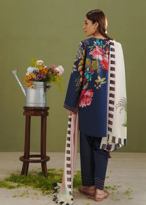 Embrace effortless elegance with this Midnight Blue Printed Lawn 3-Piece Suit, a thoughtfully designed ensemble ideal for daily and basic summer wear. Featuring a harmonious blend of florals, botanicals, and geometric patterns, this outfit draws inspiration from Good Earth–style aesthetics, offering a refined yet contemporary look.