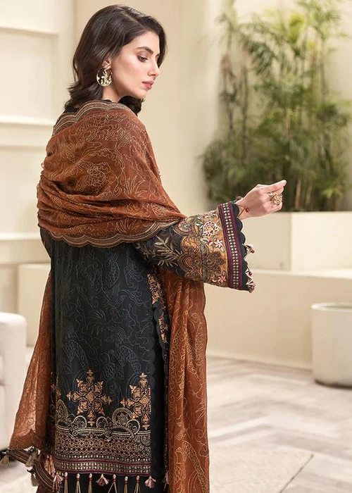 Black Embroidered Chiffon Unstitched 3-Piece Suit for Women | Festive Collection | Brands Discovery